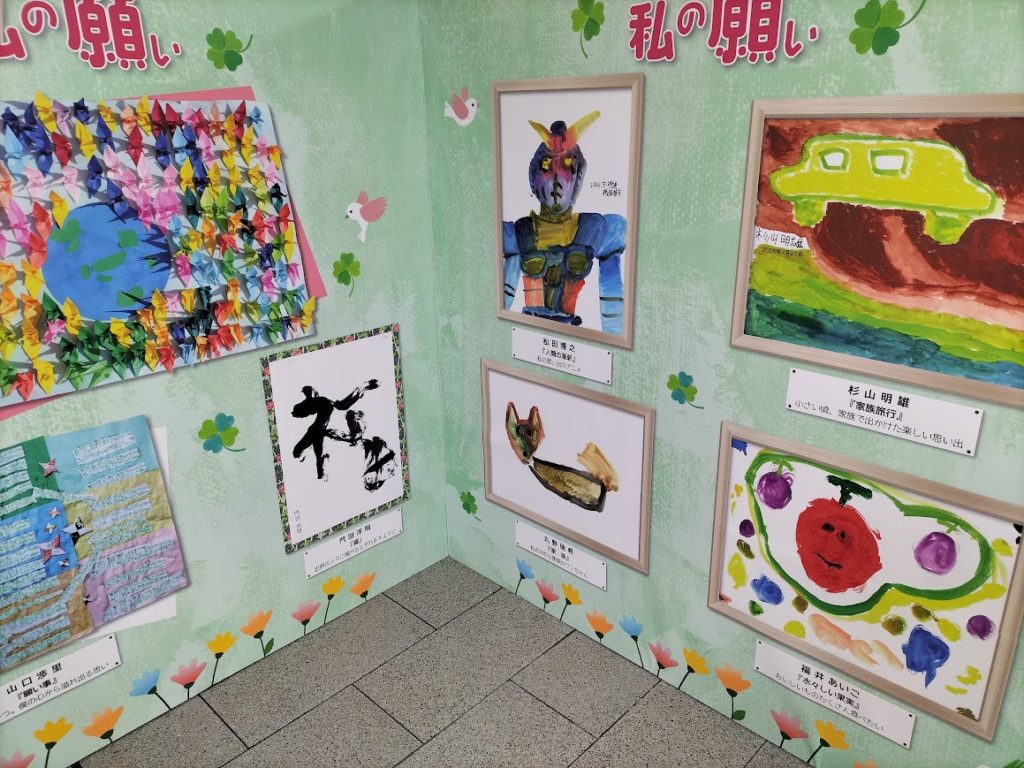 灘区役所では「なだびとアート展」として、今年度年末に高齢者へ配布されたカレンダーに採用された、障がい者のアート展示が行われ、様々な作品が展示されていました。